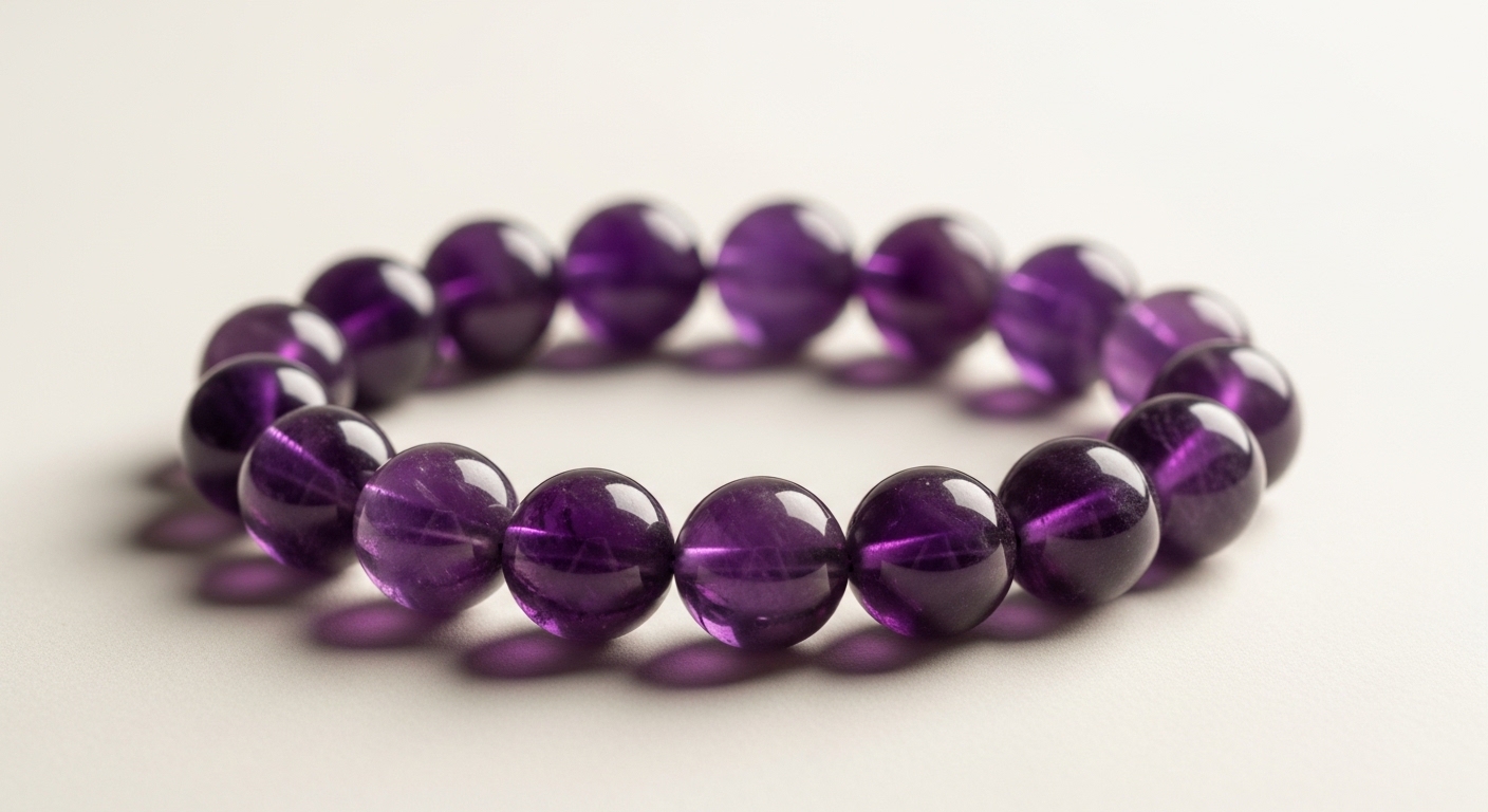 Amethyst bracelet with rich purple tones and natural variation. A staple item for crystal-focused retail collections. Elastic cord construction with consistent bead sizing. Suitable for boutique and gift store assortments. MOQ 10 pcs per style.